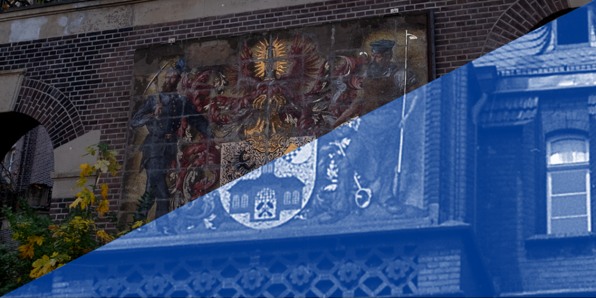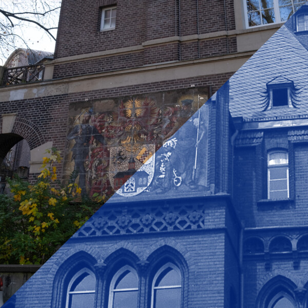 Gelsenkirchen hat Flügel. Seit der Bahnhof und die Zeche Hibernia eröffnet wurden, geht es nur noch steil bergauf. Was vor kurzem noch ein verschlafenes Bauerndorf mit Kirche und Marktplatz war, zieht heute immer mehr Menschen an. 1875 war Gelsenkirchen so groß, dass ihm die Stadtrechte verliehen werden. Aber was eine richtige Stadt ist, braucht auch einen richtigen Verwaltungssitz. 1894 wird das Gelsenkirchener Rathaus fertiggestellt. Die Gelsenkirchener waren sehr zufrieden: Es spiegelte den Wohlstand und die Bedeutung der Stadt wieder. Der Architekt hatte bewusst Inspiration bei Rathäusern in altehrwürdigen mittelalterlichen Städten gesucht. Der Haupteingang wird vom Stadtwappen geschmückt. Im Zentrum des Wappens steht eine Kirche auf einem Schild. Sie verweist auf die Vergangenheit als Kirchspiel. Im Torbogen der Kirche zeigen Hammer und Schlägel an, was die Verwandlung zur Stadt überhaupt erst möglich gemacht hat. Gehalten wird das Schild von Bergmann und Gießer, denn sie sind das Rückgrat der Stadt. So wie es auch die Arbeiter der Zeche Consolidation und der Gutehoffnungshütte im benachbarten Dorf Schalke sind.