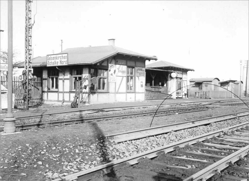 Bereits seit 1875 wurde der Bahnhof Schalke-Nord für den Personenverkehr genutzt. Damals wurden die Fahrgäste hier noch in einem bescheidenen Fachwerkhaus empfangen. Von dort mussten sie etwa 15 Minuten die König-Wilhelm-Straße hinunter laufen, um den Schalker Markt zu erreichen. Ab da konnten sie dann weiter die prächtige Kaiserstraße herablaufen oder die Geschäfte in der Schalker Straße besuchen. Die Fahrt mit der Bahn war nicht billig. Nur die Fans mit genügend Geld konnten sich die regelmäßige Anreise mit der Bahn leisten. 1974 - ein Jahr, nachdem der FC Schalke für seine Spiele ins Parkstadion umgezogen ist - stoppte auch der Zugverkehr am Bahnhof Schalke-Nord. Seit 1985 steht der Bahnhof Schalke-Nord unter Denkmalschutz gestellt.