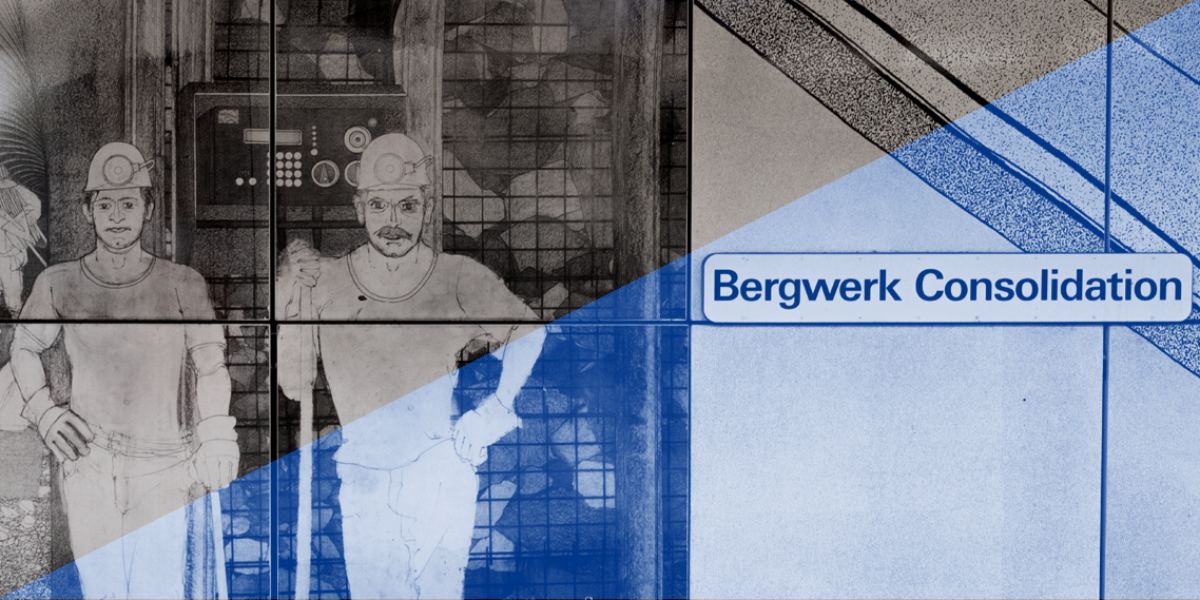 Wer die Rolltreppen der Haltestelle "Bergwerk Consolidation" betritt, begibt sich auf eine kleine Reise. Über der Rolltreppe hängen Bergmänner in Holzstreben. Sie beobachten genau, wer in die Tiefe fährt. Auch unten auf dem Bahnsteig begrüßen Bergarbeiter mit von Kohle ganz schwarzen Gesichtern die Reisenden. Ähnlich hat es bis vor wenigen Jahren noch wenige hundert Meter weiter ausgesehen, als auf Consolidation 3/4/9 oder auf Consolidation 1/6 die Kumpel noch in Tiefen von bis zu 1.200 Metern fuhren. Die Haltestelle "Bergwerk Consolidation" hält die Erinnerungen an diese Zeit wach. Mit seinen sechs großformatigen Szenen macht sie die Arbeitswelt unter Tage in einem Streb greifbar. Die Wände greifen in ihrer Gestaltung außerdem die Strukturen von Kohleflözen auf. Grubenwagen am Ende des Bahnsteigs runden die kleine “Raumfahrt ins Innere der Erde” ab.