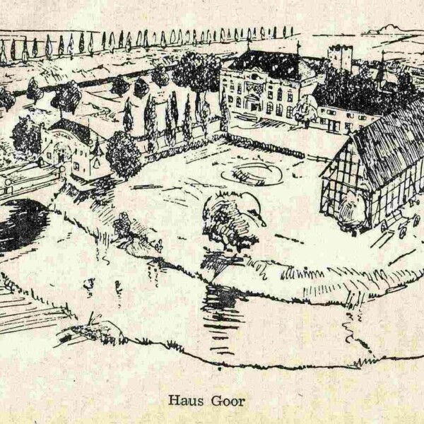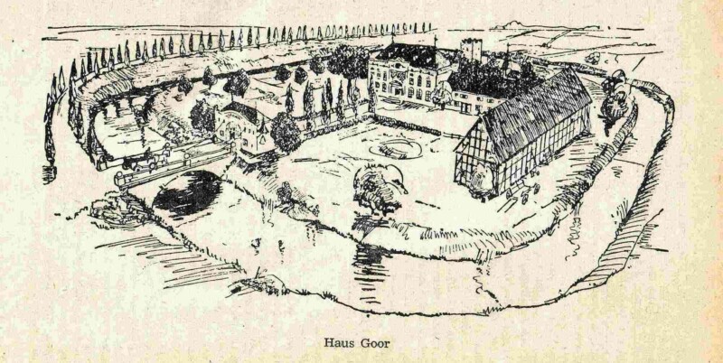 Als die Jungs auf der Wiese von Siegen und Pokalen träumten, war das Haus Goor schon mindestens 600 Jahre alt. “Goor” bedeutet so viel wie Schlick, Moder oder morastiger Ort. Zu dem Rittergut gehörte eine Wasserburg. Durch Heirat gelangte sie 1767 in den Besitz des französischen Grafen Seyssel d’Aix. Das Rittergut mitsamt Herrenhaus und Ländereien wechselte noch einige Male den Besitzer, ehe Friedrich Grillo es 1863 pachtete, um dort Schacht 1 der Zeche Consolidation abteufen zu lassen. Schon bald machten sich die ersten Bergbauschäden bemerkbar: Haus und Wiese begannen abzusinken. Um nicht in einen juristischen Prozess verwickelt zu werden, versuchte Consol, die Wiese zu erwerben. Nach und nach verkauften die Besitzer Teile des Guts. 1896 gehörte nur noch so wenig Land zum Haus Goor, es verlor seinen Status als Rittergut. Die Schalker Kicker von Westfalia Schalke zog es bald auf einen Platz an der Grenzstraße.