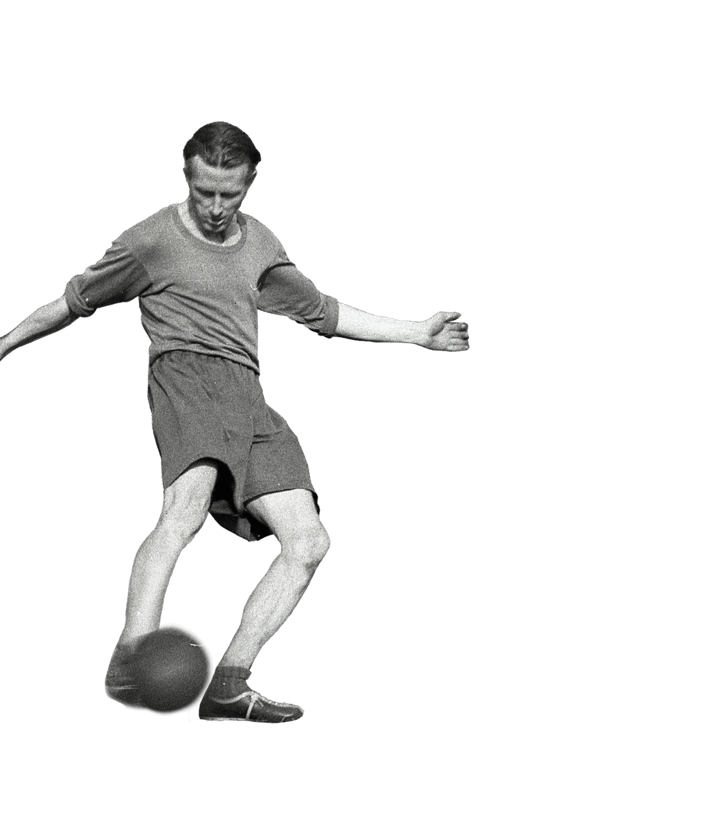 Oben: Ernst Kuzorra in seinen besten Jahren und in Farbe. Dieses Bild wurde aus historischen Vorlagen mittels künstlicher Intelligenz erstellt.