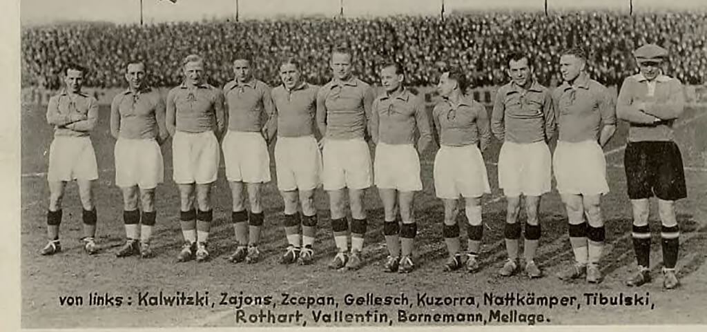 Die Knappen spielen sich seit Ende der 1920er Jahre und in den 1930er Jahren in die Herzen der Menschen. Die Nationalsozialisten versuchen diese Popularität für sich zu nutzen. Ein erfolgreicher “Arbeiterverein” passt zu gut in die Erzählung der Nationalsozialistischen Arbeiterpartei (NSDAP). Die Schalker distanzierten sich nie von der menschenverachtenden Ideologie und dem verbrecherischen System. Der FC Schalke 04 kann sich dem politischen und gesellschaftlichen Klima nicht entziehen. Der Verein beginnt bald, nachdem die Nationalsozialisten an der Macht sind, jüdische Mitglieder auszuschließen. Darunter der zweite Vorsitzende des Vereins: Dr. Paul Eichengrün muss 1933 sein Amt niederlegen. Einige Spieler und Funktionäre traten der NSDAP bei. Trotzdem tut sich keines der Mitglieder als fanatisches und aktives Mitglied der NSDAP hervor. Genauso wenig kritisieren sie das Regime oder widersetzen sich der Politik.